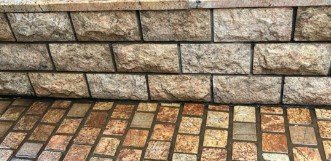 Yellow granite cobble from features yellow undertones that contrast beautifully with the gray and dark brown.