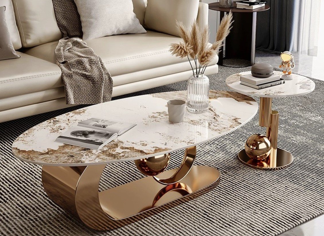 Slate Marble Top + Stainless Steel Base Center Table